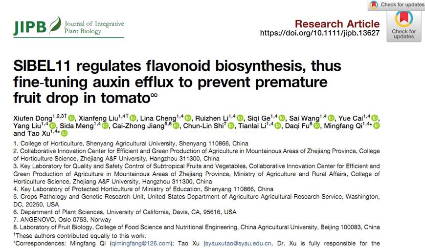 JIPB [2022 IF 11.4]沈陽(yáng)農(nóng)業(yè)大學(xué)齊明芳/許濤教授團(tuán)隊(duì)在番茄脫落調(diào)控機(jī)制方面取得新進(jìn)展