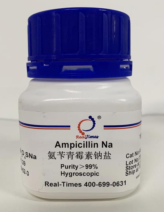 說明:A β-lactam antibiotic with an amino group side chain attached to the penicillin structure. Penicillin derivative that inhibits bacterial cell-wall synthesis (peptidoglycan cross-linking) by inactivating transpeptidases on the inner surface of the bacterial cell membrane. Mode of resistance: Cleavage of β-lactam ring of ampicillin by β-lactamase. Antimicrobial spectrum: Gram-negative and Gram-positive bacteria. Stock solution: 100mg/ml. Recommended for use in molecular biology applications at 20-50 μg/ml.