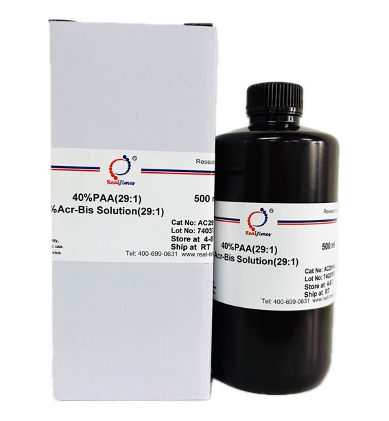 PAA溶液常用于配制PAGE膠,包括SDS-PAGE,Tricine膠,Blue native膠等,常用于蛋白和核酸的分離。