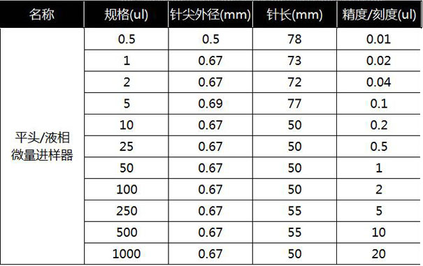 5 μl平頭微量進樣器貨號:JYQ-PT-5 價格:80元
