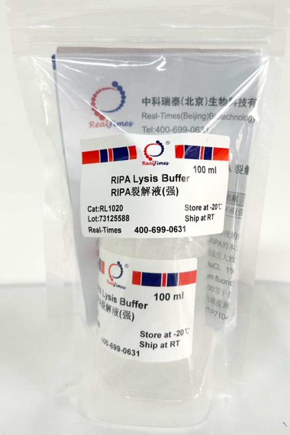 fluoride,EDTA,EGTA等多種抑制劑。可以有效抑制蛋白降解。由于含有較高濃度的Triton X-100等干擾物質,不能用傳統Bradford法測定由本裂解液裂解得到樣品的蛋白濃度,可以使用BCA蛋白濃度測定試劑盒(貨號:RTP7102)或Bradford蛋白濃度測定試劑盒(去垢劑兼容型)(貨號:RTP7104)測定蛋白濃度。