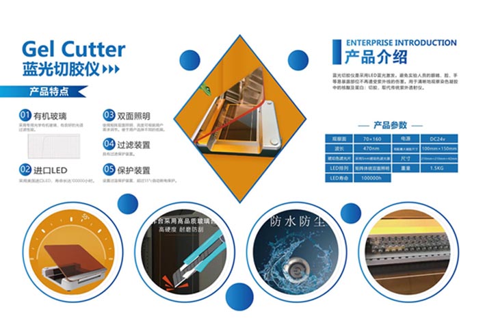在使用切膠儀之前請仔細閱讀操作明。琥珀酸濾光器提供一定的藍光保護,只涉及用于保護在儀器前操作的人員,用于清晰地觀察染色凝膠中的核酸。