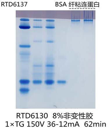 Product: RTD6130 非變性PAGE凝膠制備及電泳試劑盒; PL111 5×非變性非還原蛋白上樣緩沖液; RTD6142 高分子量非變性電泳蛋白質Marker II(45-669 kD)