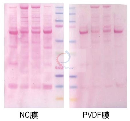 NC膜對比PVDF膜,PVDF膜麗春紅染色靈敏度低于NC膜