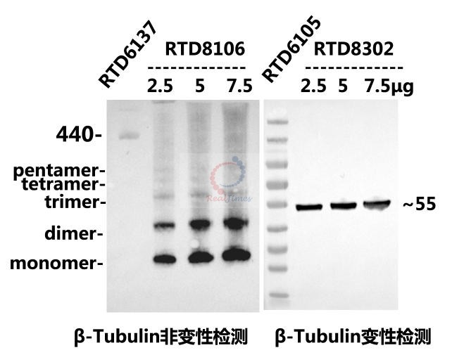 1 β-Tubulin可以作為Tris-甘氨酸非變性系統的對照,結果為多種聚體。