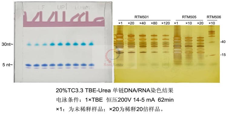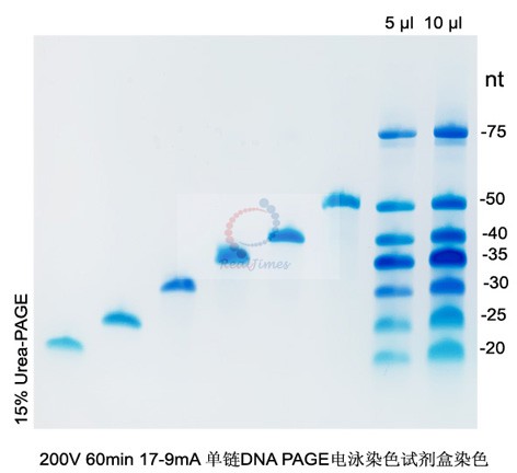 1. 使用單鏈DNA PAGE電泳染色試劑盒(貨號:RTS5103)染色: